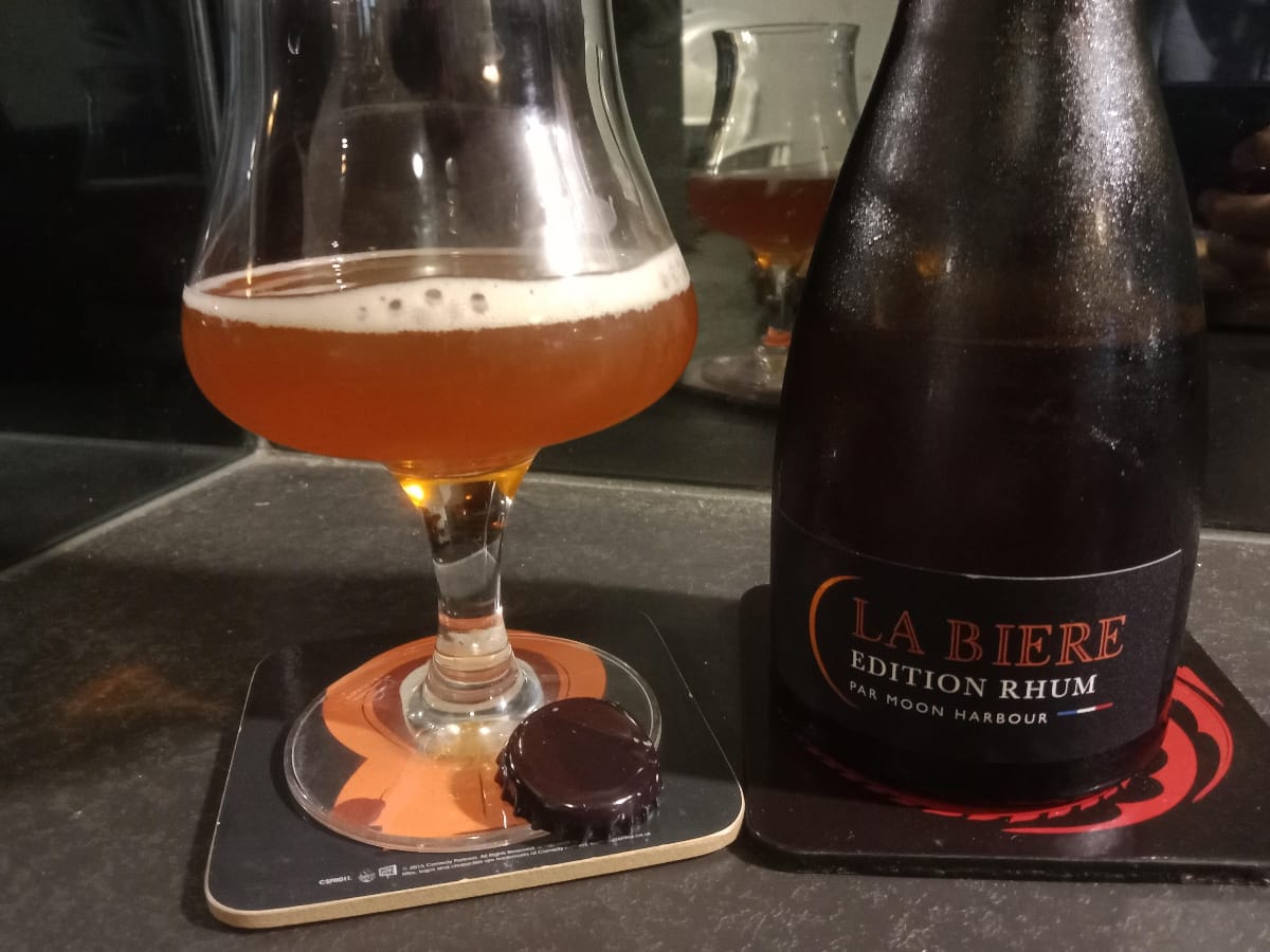 Robe orange foncée cuivrée très opaque avec une mousse blanche moyenne & persistante. Nez abricot chaud, confiture de pommes, caramel, un peu de vanille. Le genre de nez que je peux retrouver dans des triples ou ambrées. Souple en bouche, écumeuse avec une pointe amer assez vive. Laisse une fin de bouche de caramel, on sent peu l'alcool c'est très traître ! À boire avec des fruits jaunes (abricots secs), un plat un peu sucré/salé... Voir à tenter avec du foie gras ou des fromages de "caractères" (j'pense à un vieux comté) Bon accord avec la douceur des carottes à la coriandre et trempée dans la sauce madère mais accord parfait avec les bananes flambées dont le gout du sucre chaud avec l’arôme de rhum me rappellent les canelés :D :P Globalement un peu déçu, on ne sent pas les marqueurs d'une IPA, le rhum est à peine présent... J'ai envie de dire "tout ça pour ça" on dirait une triple bourrine sans grand plus en fait..